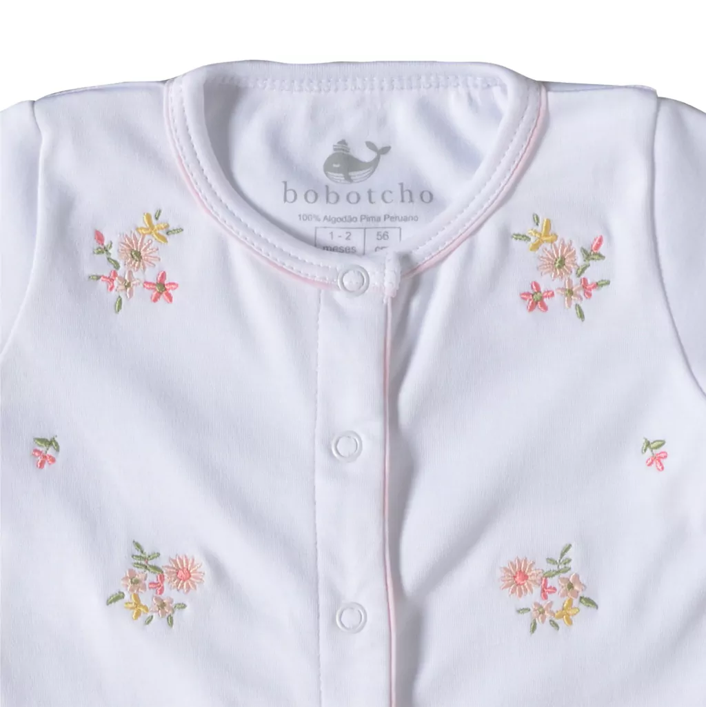 Macacão Duplo em Algodão Pima com bordado Flores do Campo